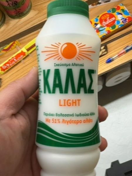 The typography prominently features a bold, sans-serif font in green for the brand name 'KALAS', providing a clean and modern look. The word 'LIGHT' is written in a thinner, orange sans-serif font, creating a visual hierarchy that emphasizes the product's key feature. The overall typographic arrangement is straightforward and easily legible.