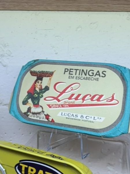 A type of canned fish product, specifically sardines (petingas) in a spiced vinegar sauce known as escabeche.