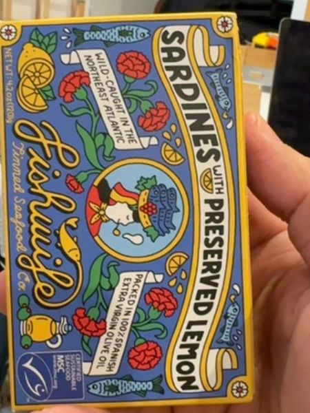 Canned sardines with preserved lemon, wild-caught in the Northeast Atlantic and packed in Spanish extra virgin olive oil.