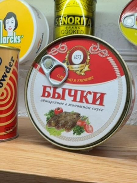 Canned bullheads fried in tomato sauce.