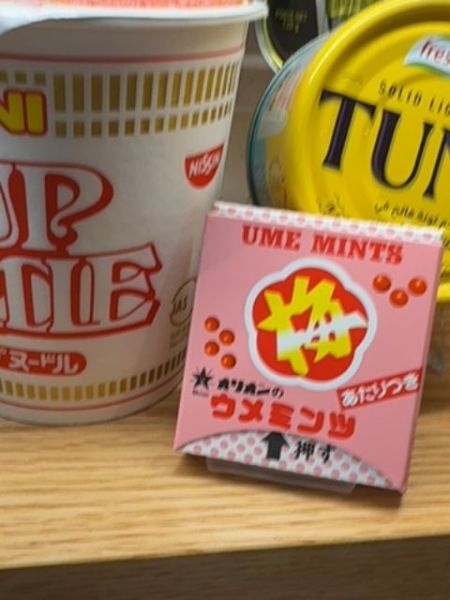 The typography used on the packaging combines bold, sans-serif fonts for the main product name 'UME Mints,' which stands out prominently in red. Stylized Japanese characters complement the design, adding a cultural touch while maintaining readability.